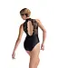 The Austrian embroidered lace back panels give this leotard its classic and romantic feel. The lace has a delicate floral pattern which travels up your back and then parts to reveal your skin in an open oval shape. Ruching detail finishes off the open back design and adds another delicate feature. The tank sleeves and high neck combine to contrast the elaborate back design for a clean and simple front. It's an elegant fashion leotard that would look beautiful in any style of dance.
