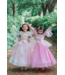 Our golden rose princess dress was such a success that we are now introducing a pink rose princess dress! This dress is accented with gold trim, shimmering organza, and two layers of tulle over top of the pink satin hoop skirt. The sleeves and bodice are made of soft crushed stretch velour - the velour has spandex for comfort and size flexibility. This dress is every princess’s dream!